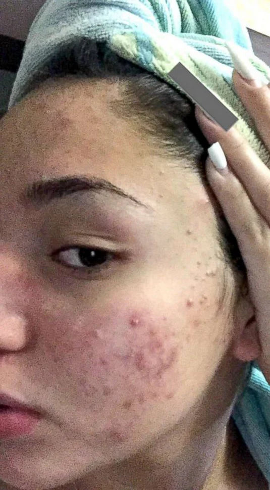Maria, 17 anni, ha condiviso questa foto della sua grave acne prima di curarla con una semplice routine di cura della pelle a base di tre prodotti poco costosi.