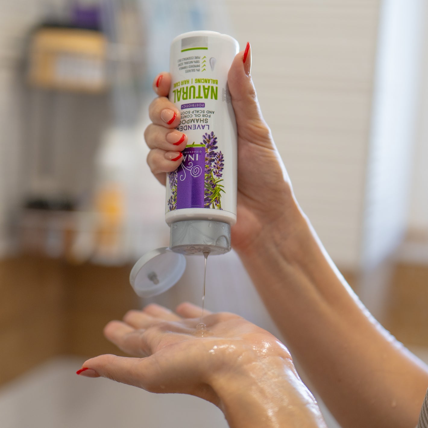 Lo shampoo naturale alla lavanda di InaEssentials lascia il cuoio capelluto purificato, levigato e pulito, oltre a ridurre l'eccesso di sebo.