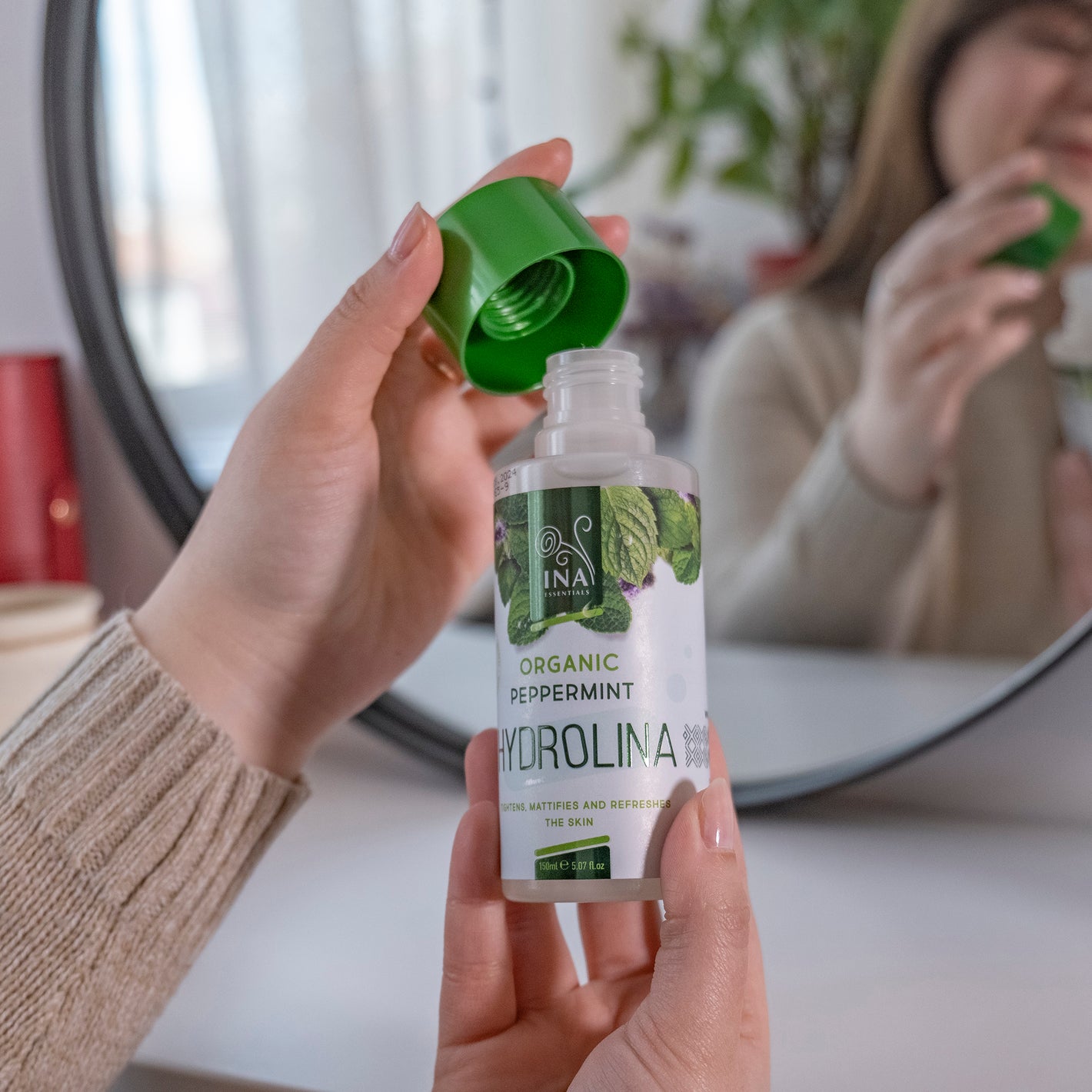 Le proprietà rinfrescanti e antinfiammatorie naturali della menta piperita rassodano la pelle, mentre gli ingredienti bioattivi come il mentolo e l'acido rosmarinico (un acido polifenolico) regolano la produzione di olio, conferendo alla pelle un aspetto opacizzato. L'Hydrolina di Menta Piperita Biologica è molto efficace per chi ha la pelle grassa o mista, trattando a fondo la pelle e lasciando un colorito più compatto e giovane. È un'ottima scelta per chi ha la pelle sensibile, perché lenisce e rinfresca la pelle irritata.