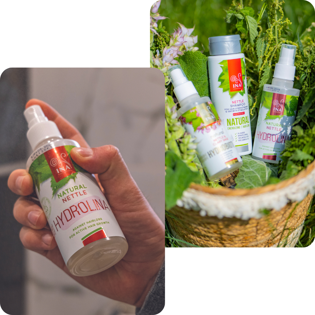 - Passo 1: Iniziate la giornata applicando la nostra Acqua di Ortica Selvatica 100% Biologica - Hydrolina. Le sue potenti proprietà stimolano la crescita dei capelli, combattono l'oleosità e li nutrono dalle radici. L'Hydrolina Routina™ biologica all'ortica selvatica costituisce una solida base per la crescita dei capelli, mantenendoli freschi e vigorosi.