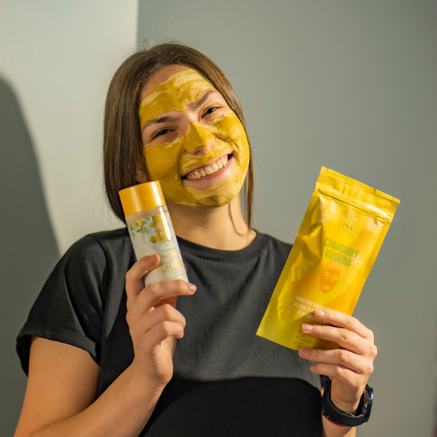Con l'uso continuo, l'effetto calmante della Chamomile Maskina dura più a lungo. La pelle è meno irritata e l'infiammazione è ridotta. La combinazione di camomilla, curcuma e prebiotici stimola la rigenerazione e la capacità di guarigione della pelle.