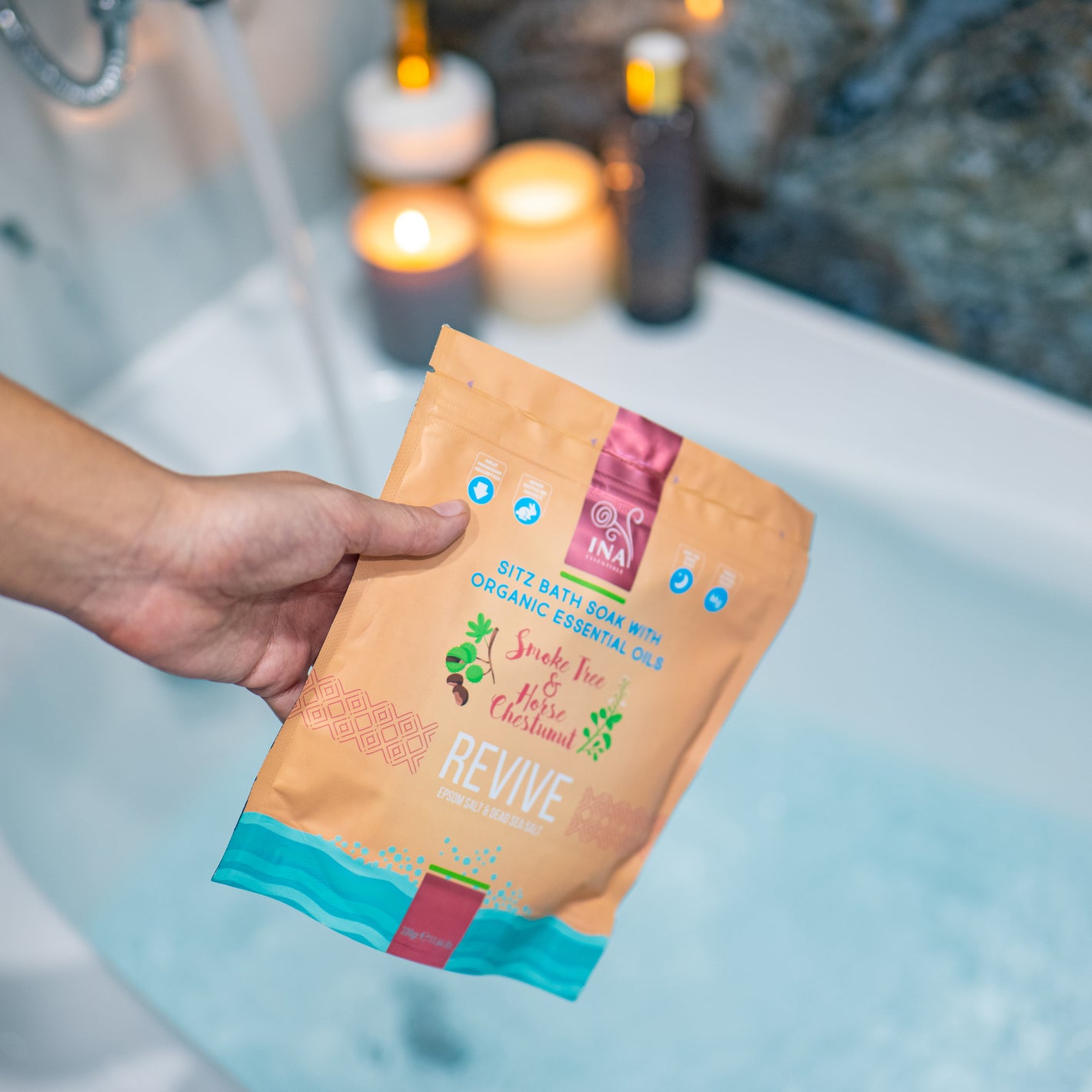 I nostri sali da bagno InaEssentials Restore sono una formula delicata di sollievo con un effetto benefico per le vene varicose e la cura post-partum. A base di sali da bagno 100% naturali, oli di ippocastano e di albero del fumo per un facile recupero.